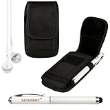 This carrier allows you to carry the phone, stereo ear-buds with microphone and includes a stylus pen with both flashlight and laser pointer. And it looks good with jeans or a suit. What's not to love?