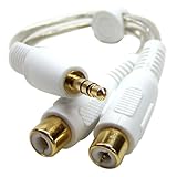 - Dual RCA female adapters connect to component's audio output via RCA cables